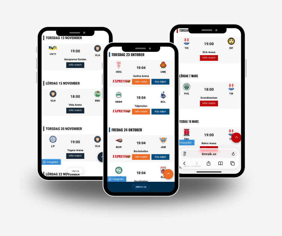 Through Sportality’s statistics integrations, all game information — results, times, and teams — updates in real time without manual input.