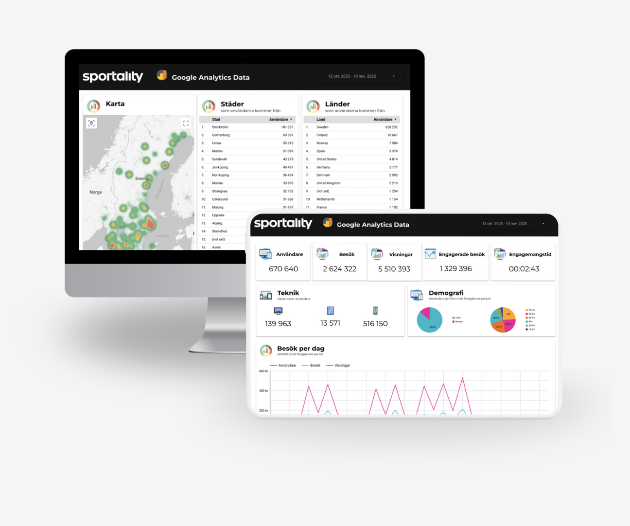 Your data syncs automatically from Sportality and Google Analytics for accurate, up-to-date insights.